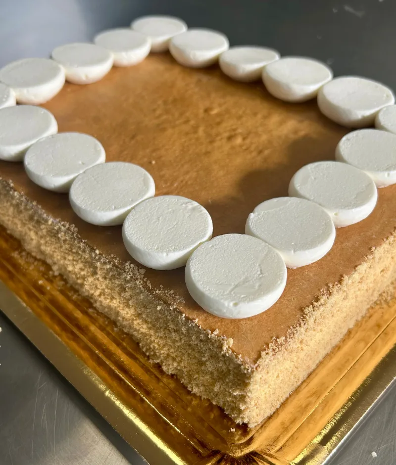 Tarta original rusa conocida como MEDOVIK, compuesta con capas de crema fresca de vainilla y toque de naranja que humedecen las capas de galleta abizcochada hecha con miel ecológica. Sin duda una de las imprescindibles en nuestra pastelería.